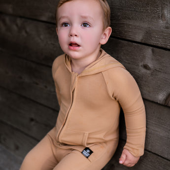 Front Opening Ready Set Romper® ZIP-IT in Ribbed Caramel
