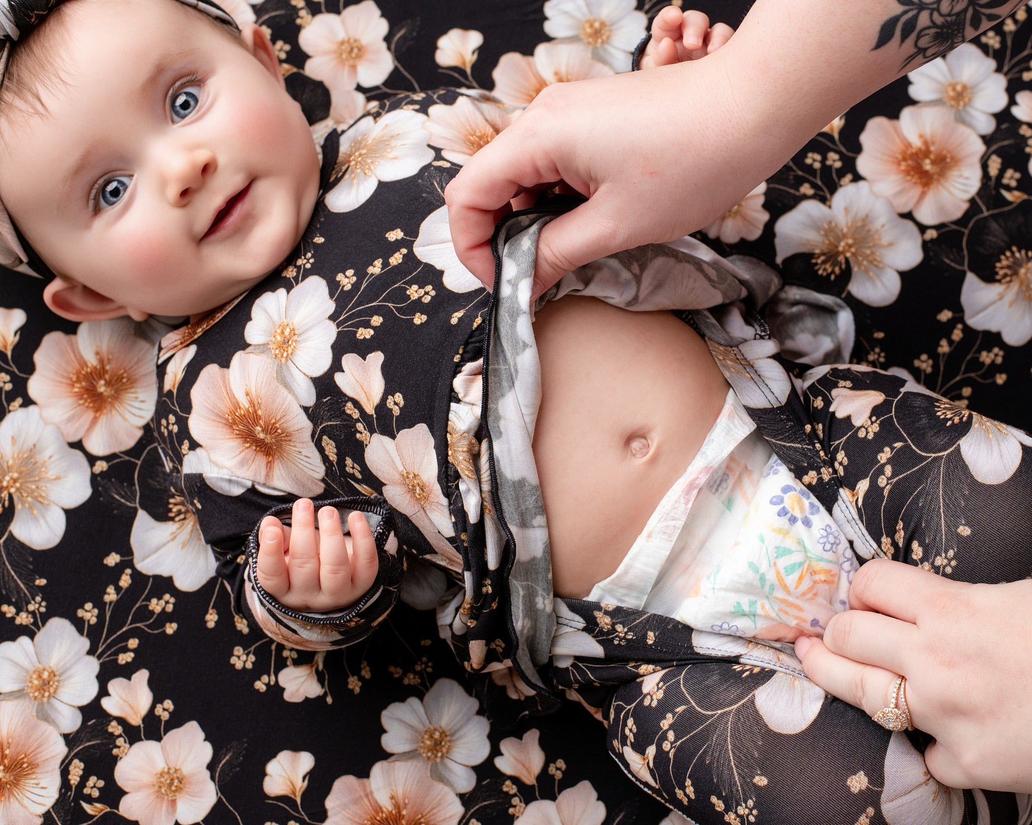 Our patented easy-on, easy-off rompers makes diaper changes as easy as 1, 2, 3 with a zipper-free, snap-free design—at home or on the go.