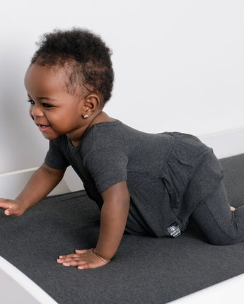 We were sleep-deprived and tired of mis-snapping our baby’s onesies or pinching them with long body length zippers before our first cup of coffee. So we changed the design game. Say hello to the first snap-free, zipper-free romper of its kind to open with an ultra-stretchy, patented envelope design.