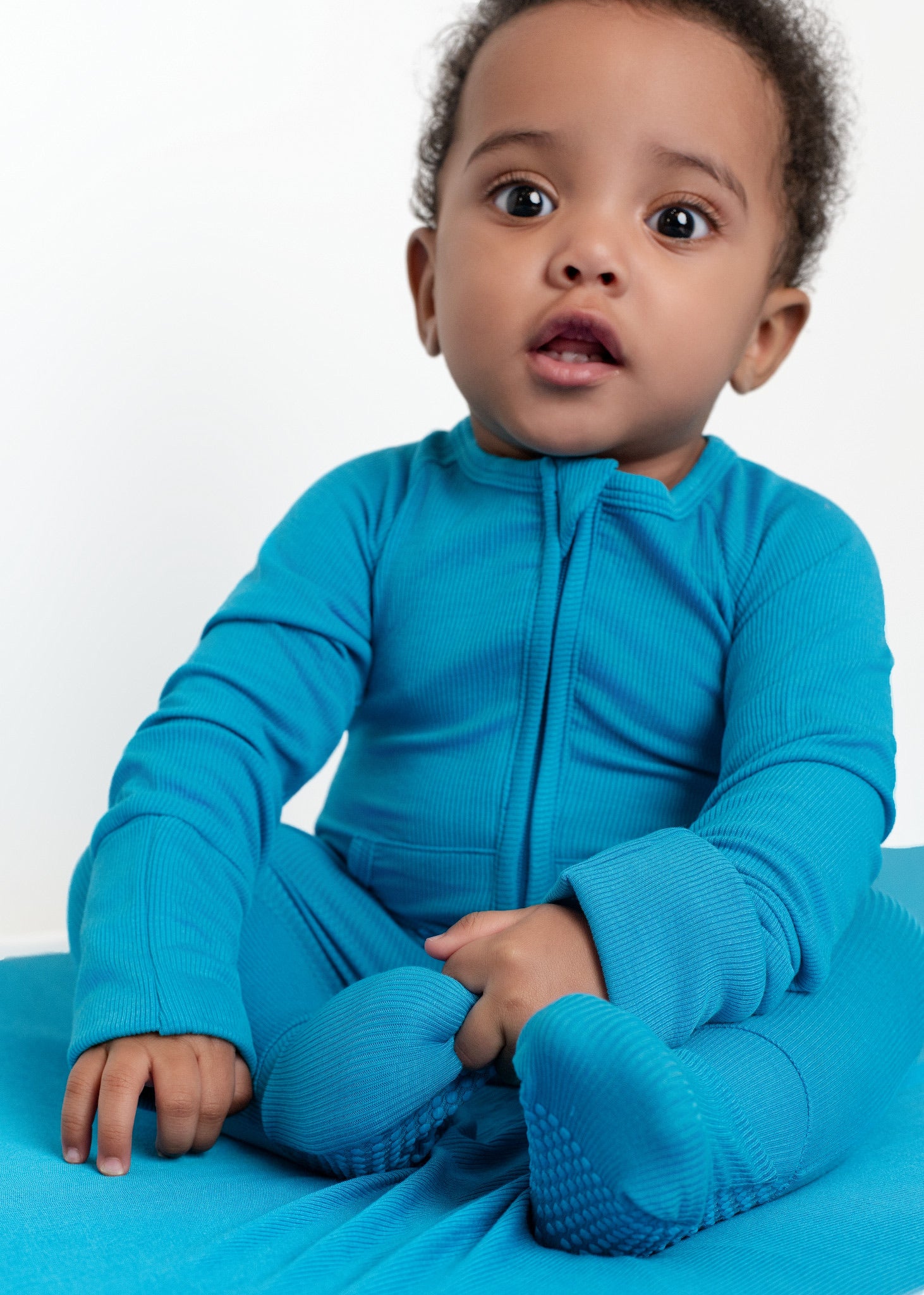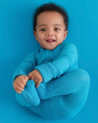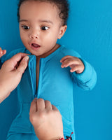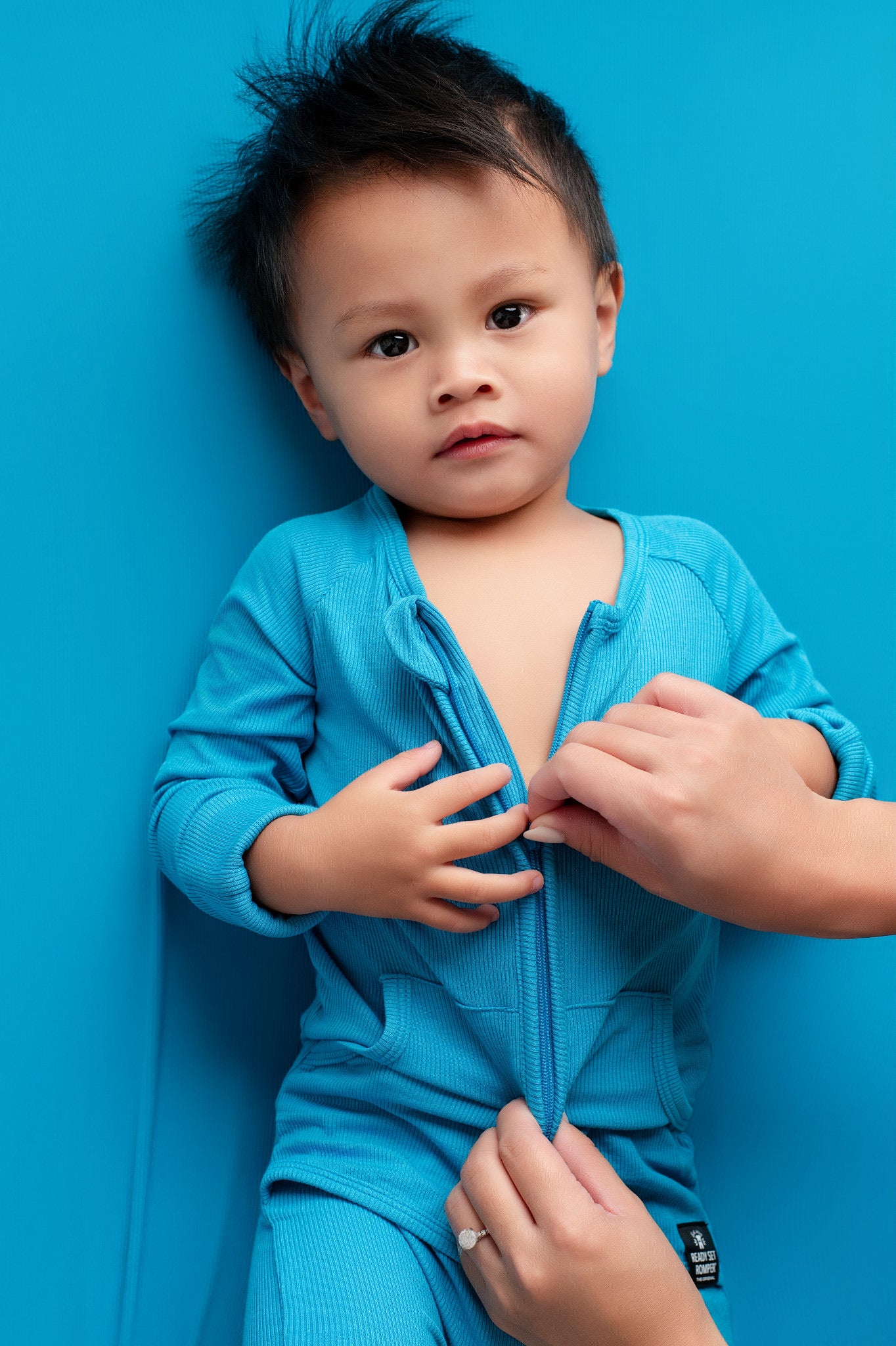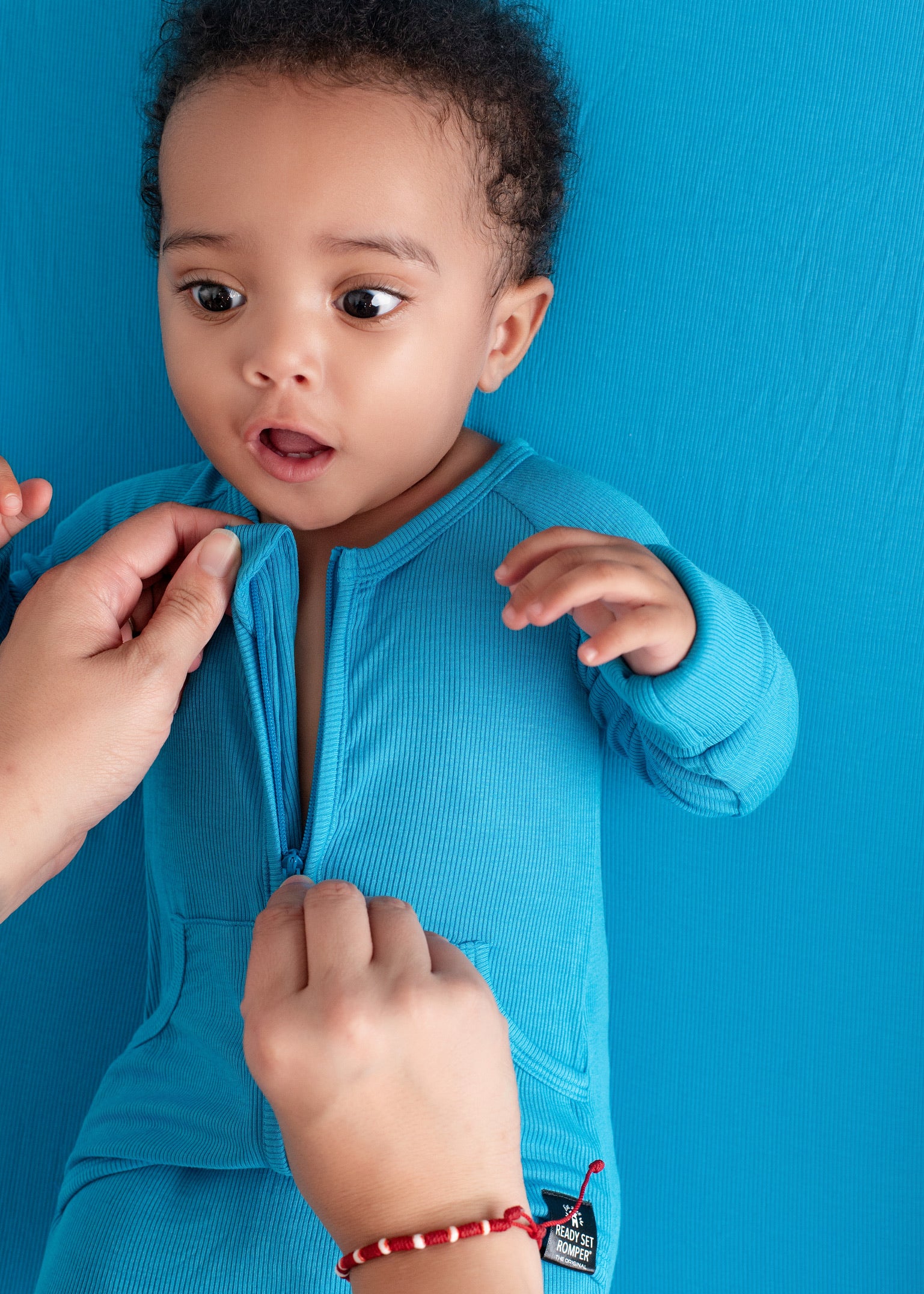 Front Opening Ready Set Romper® ZIP-IT! in Ribbed Blue-tiful