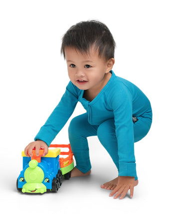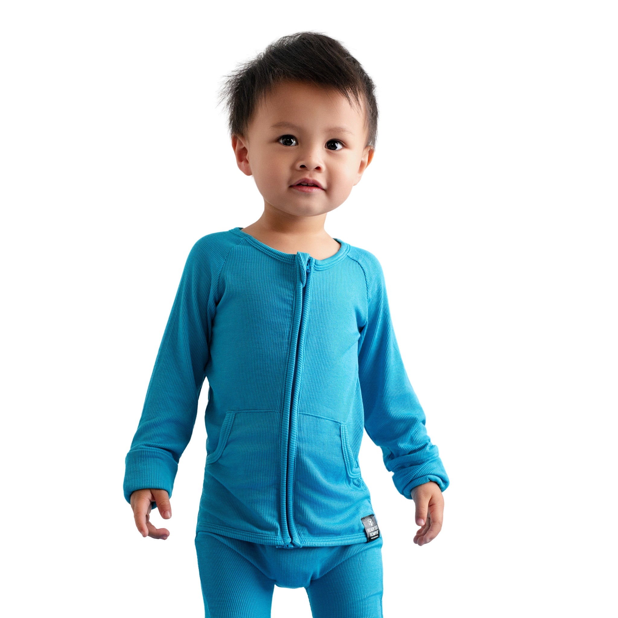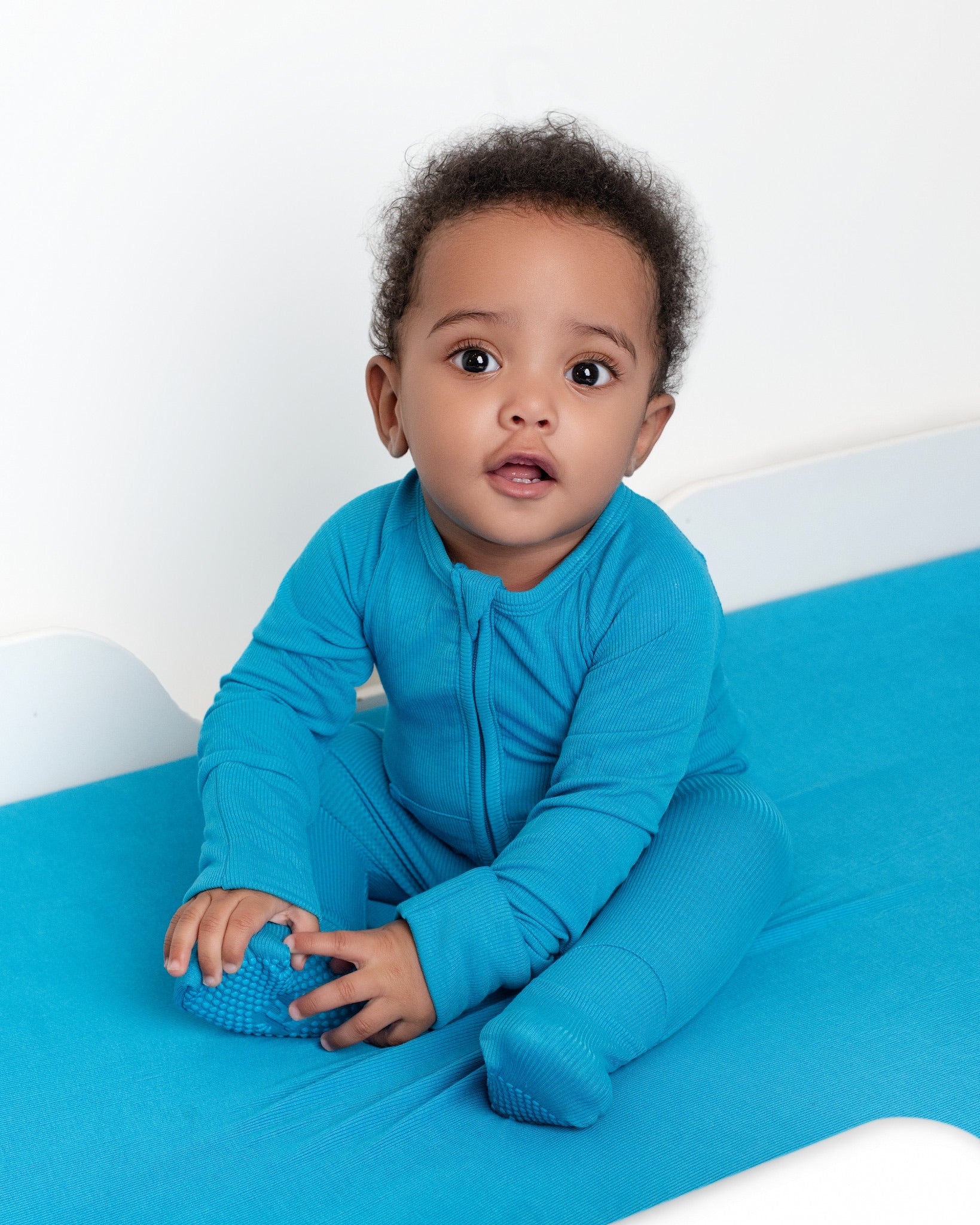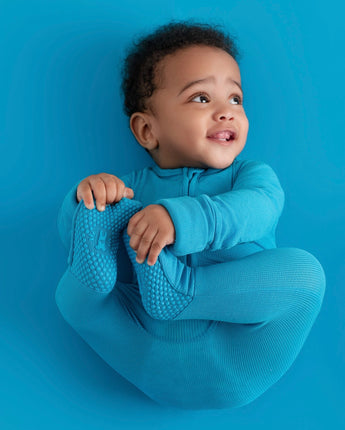 Front Opening Ready Set Romper® ZIP-IT! in Ribbed Blue-tiful