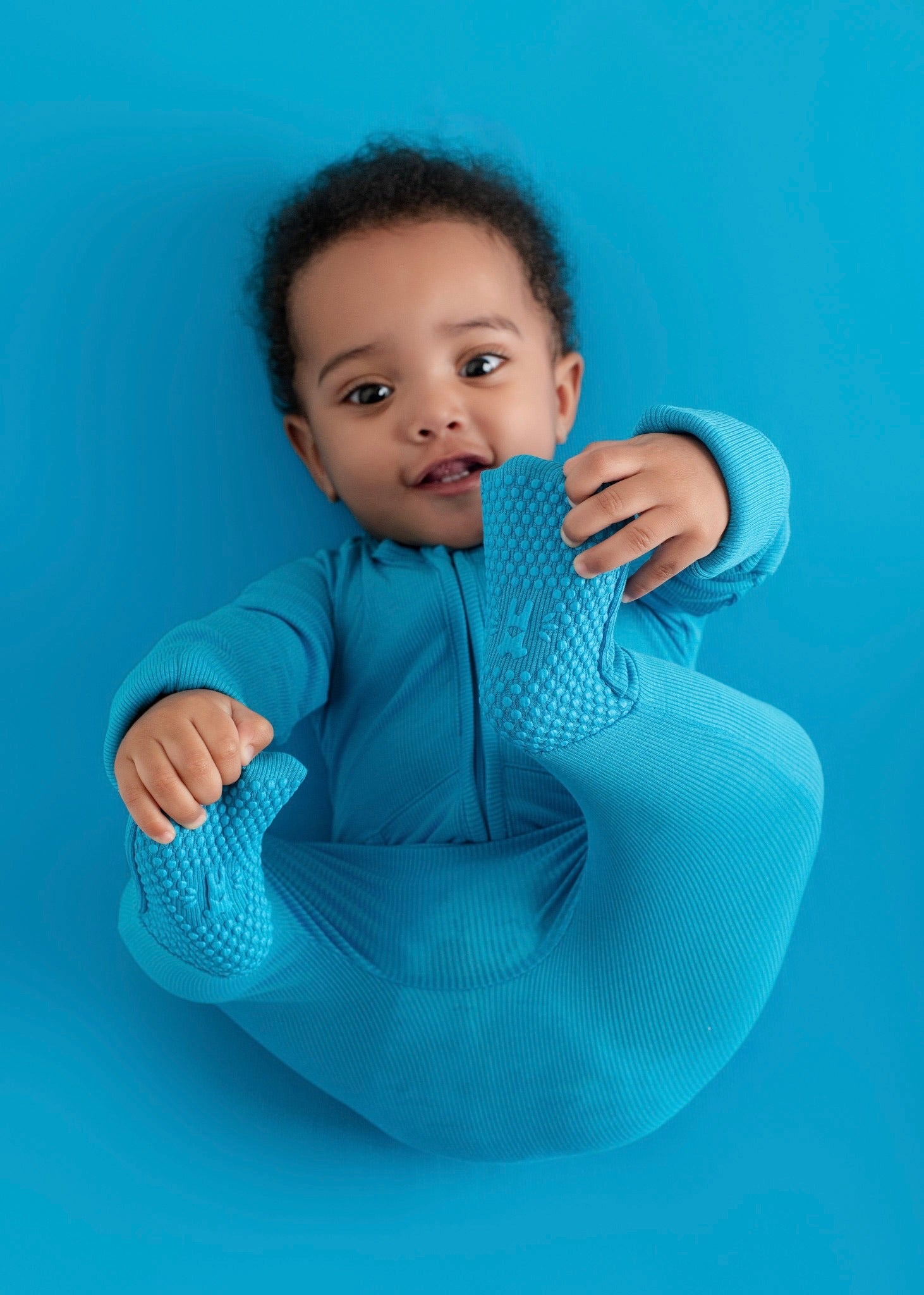 We were sleep-deprived and tired of mis-snapping our baby’s onesies or pinching them up with long full body zippers before our first cup of coffee. So we changed the design game. Say hello to the first snap-free, zipper-free romper of its kind to open with an ultra-stretchy, patent-pending envelope design.