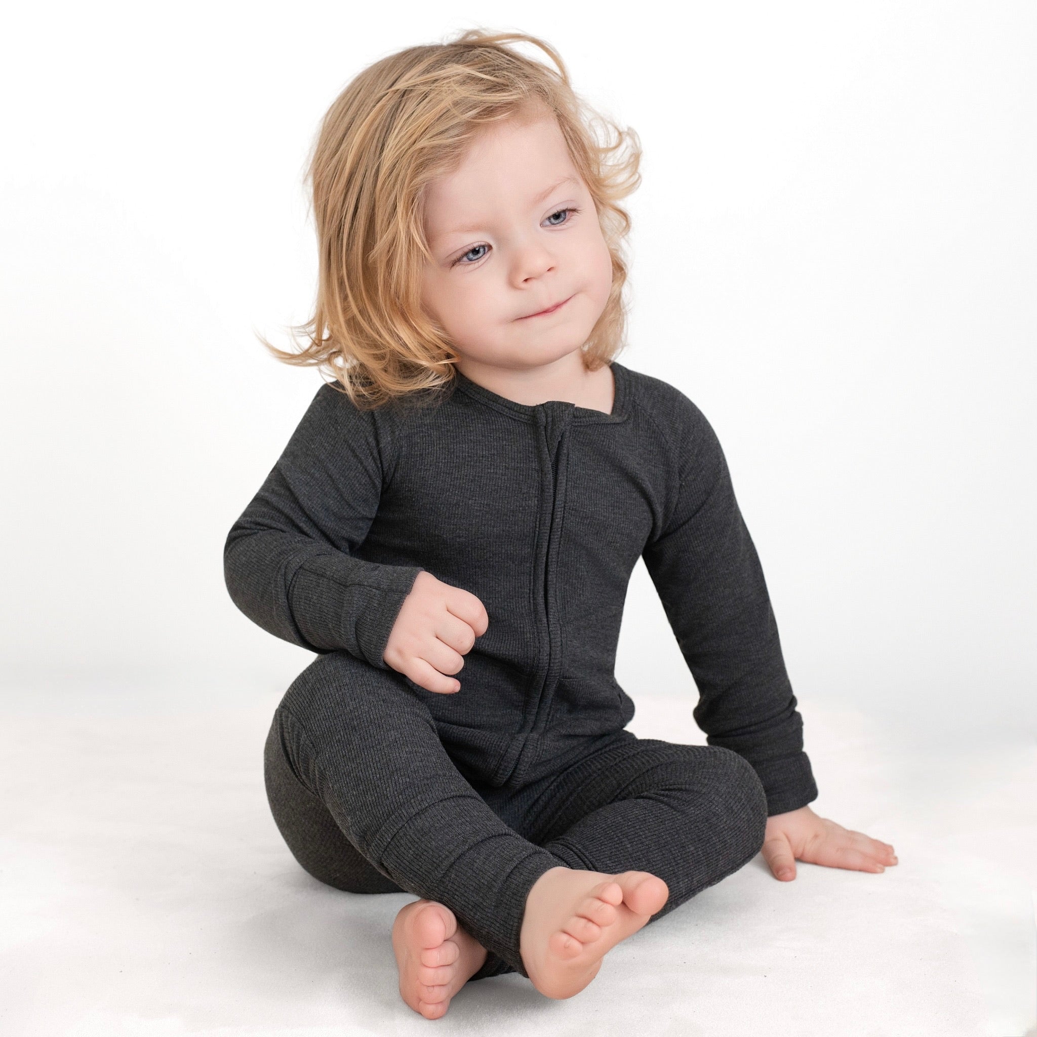Front Opening Ready Set Romper® ZIP-IT! in Ribbed O.G London Fog