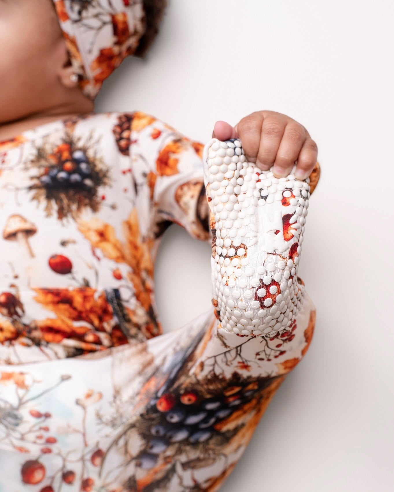 Keep cozy and scratch-free with built-in mittens and socks that roll up or down as baby grows