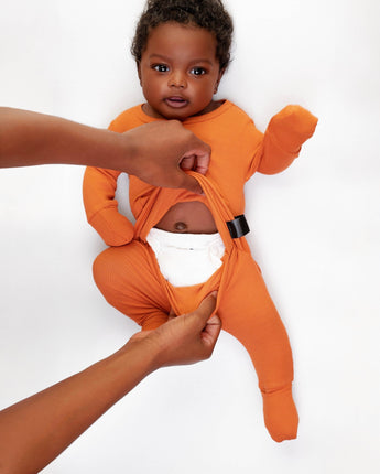 We were sleep-deprived and tired of mis-snapping our baby’s onesies or pinching them up with long full body zippers before our first cup of coffee. So we changed the design game. Say hello to the first snap-free, zipper-free romper of its kind to open with an ultra-stretchy, patent-pending envelope design.