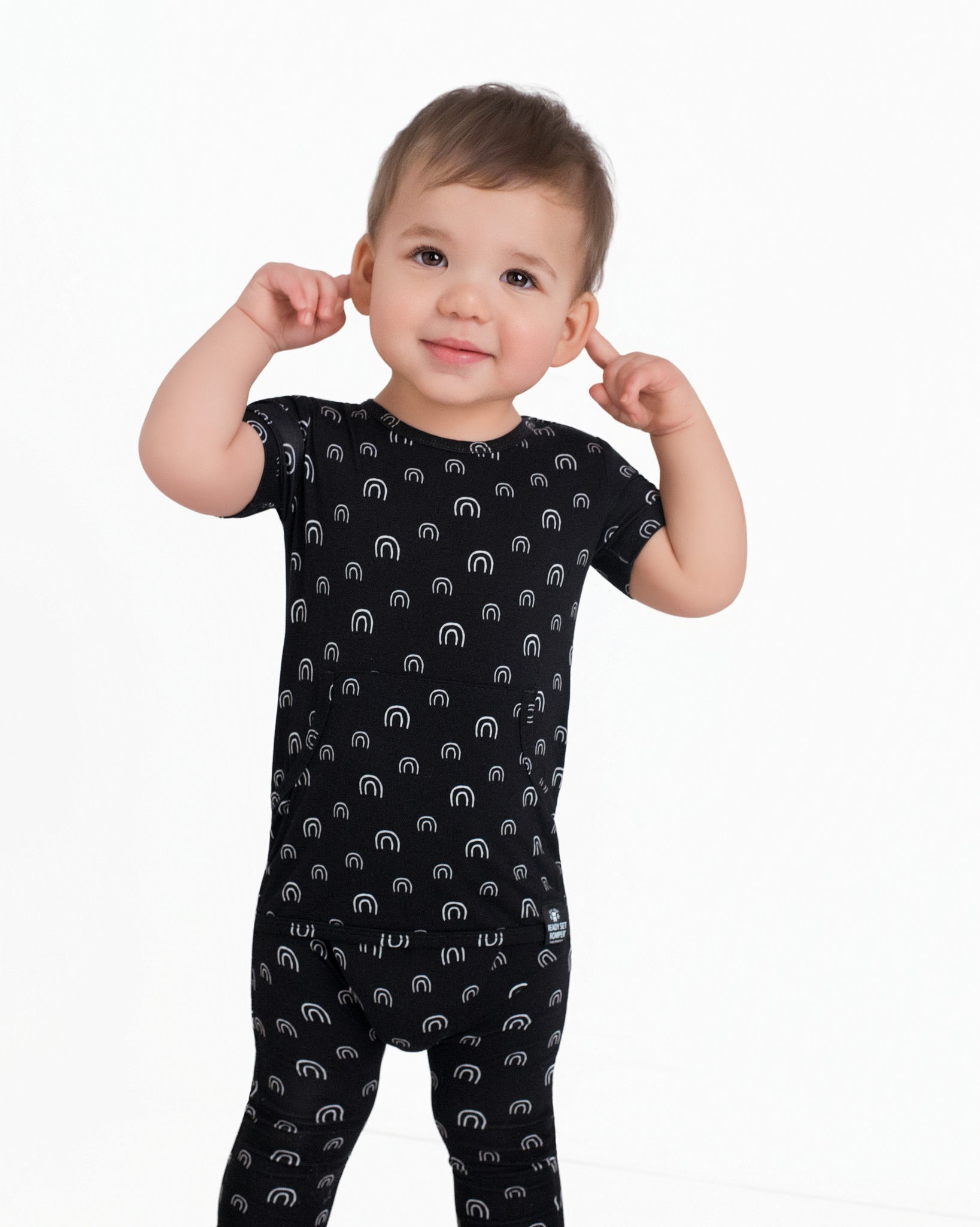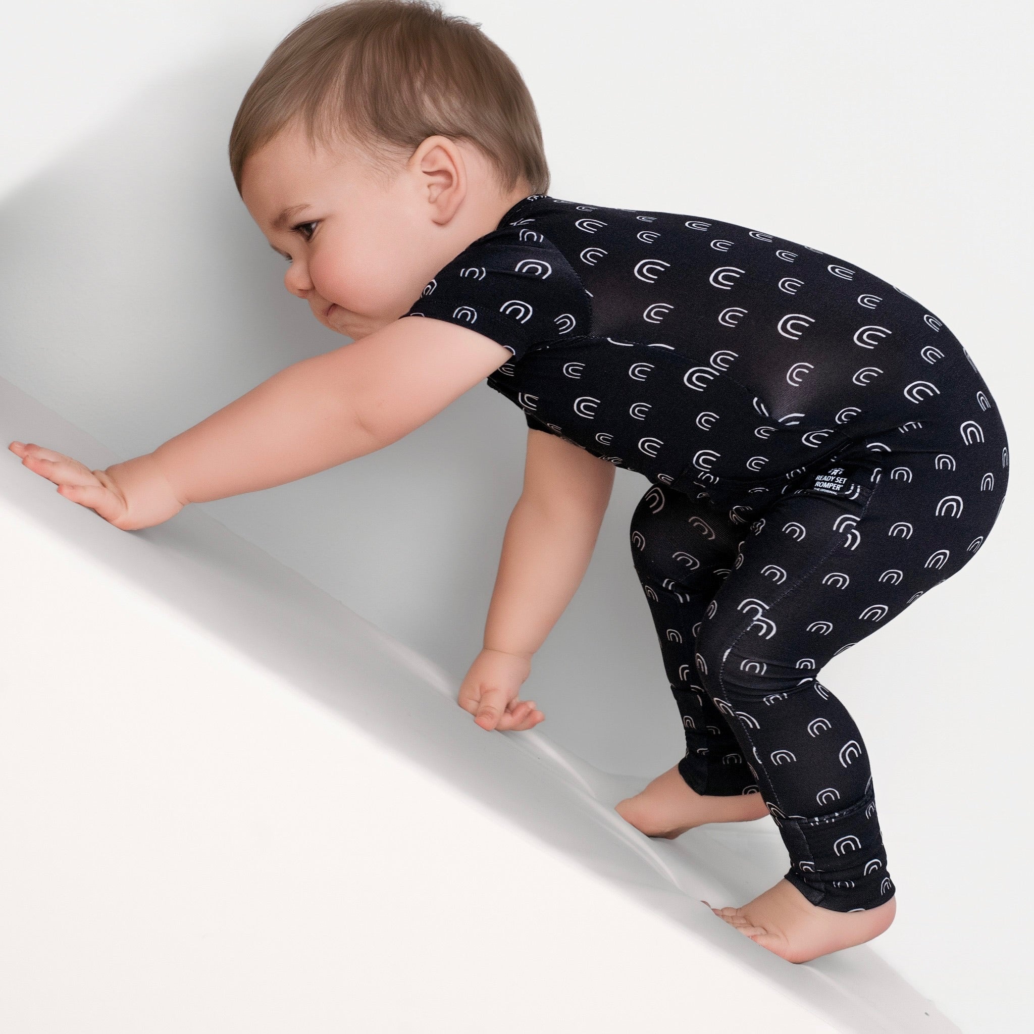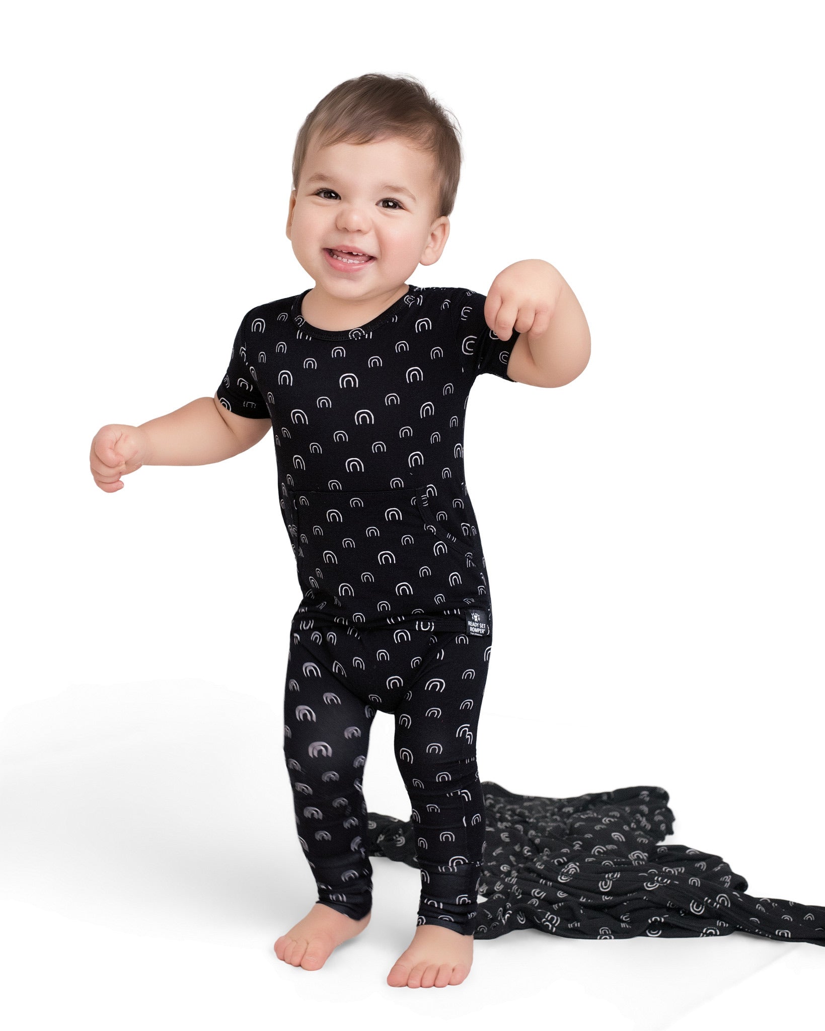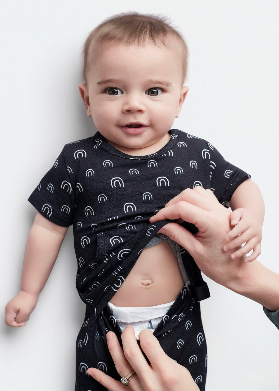 Front Opening Ready Set Romper® in O.G Monochrome Rainbows SSLL