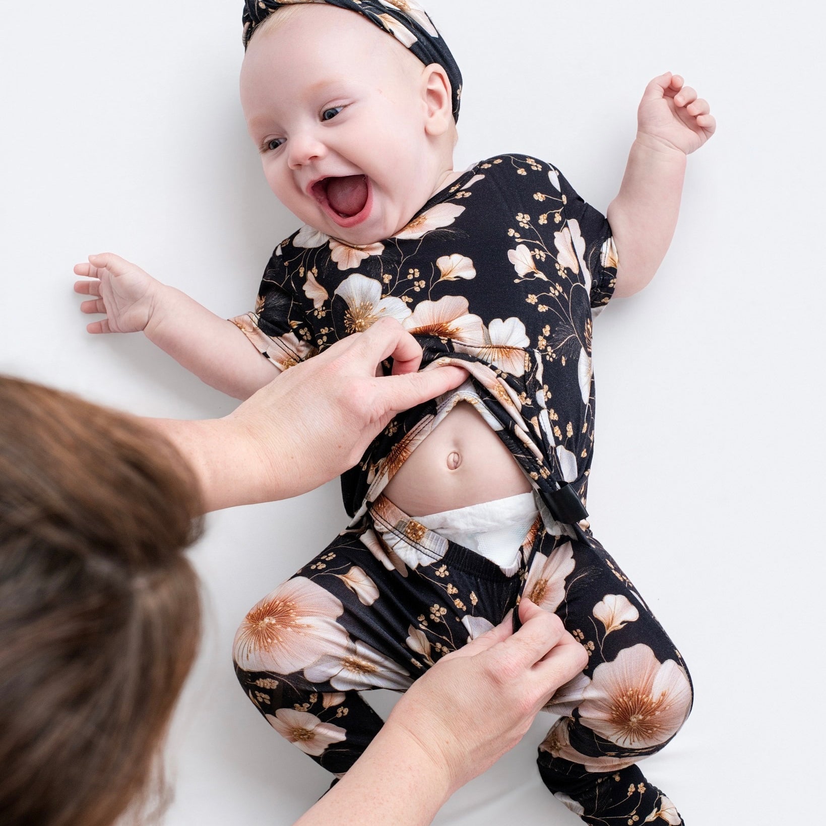 For our 0-12 sizes when potty training is not relevant, our reversible romper allows you to choose between a front or back opening romper for your easy access diaper changes.