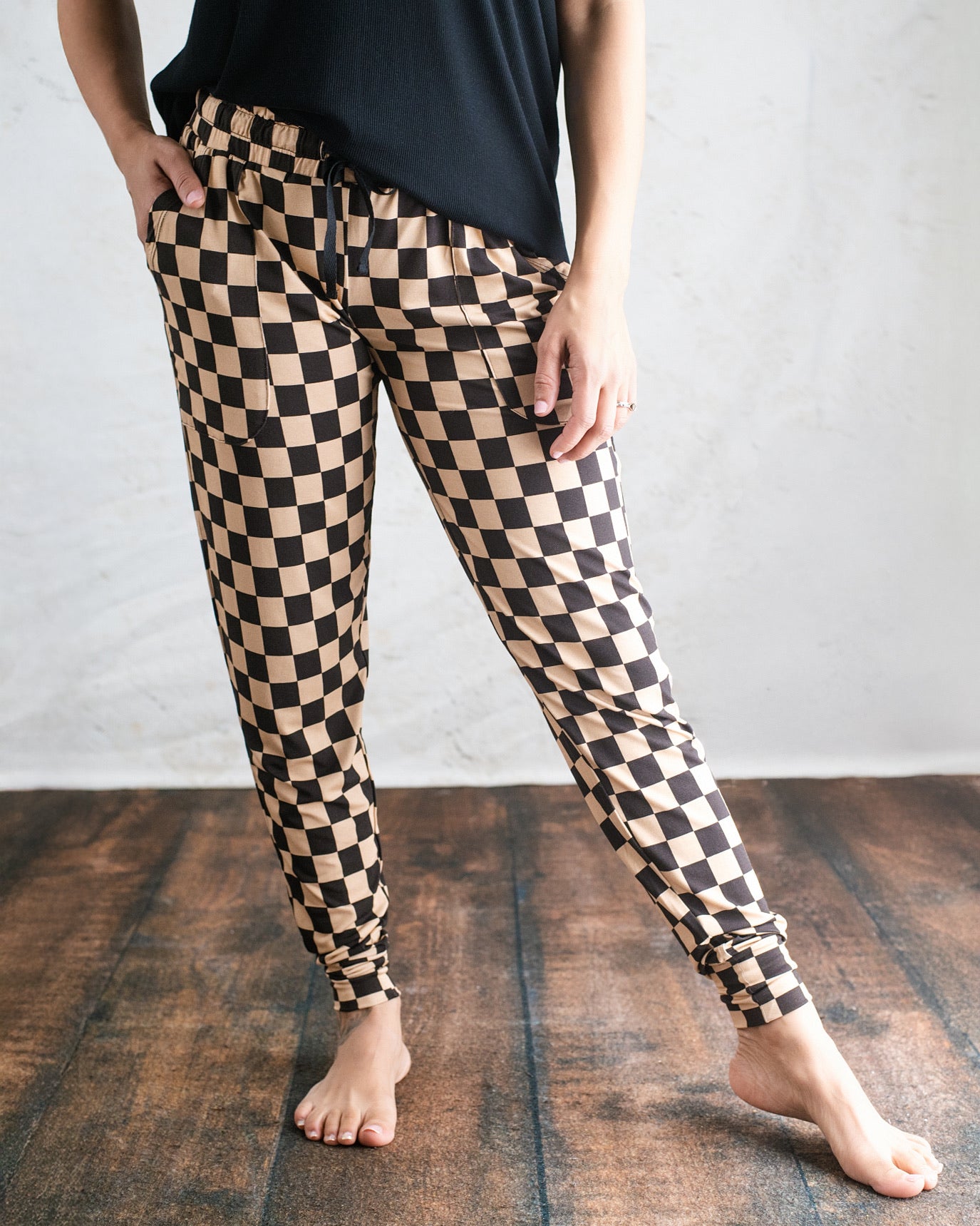 Women’s Deluxe Loungewear PANTS in TAN CHECKS